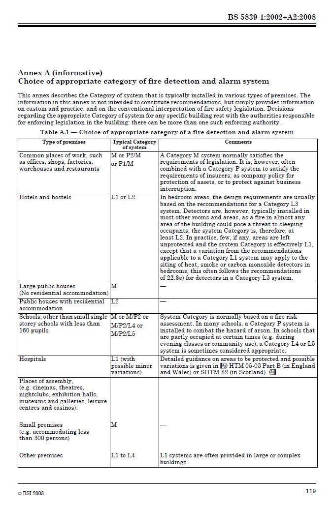 AND SPECIFICATION OF FIRE ALARM CATEGORY IN ACCORDANCE WITH BS 5839-1